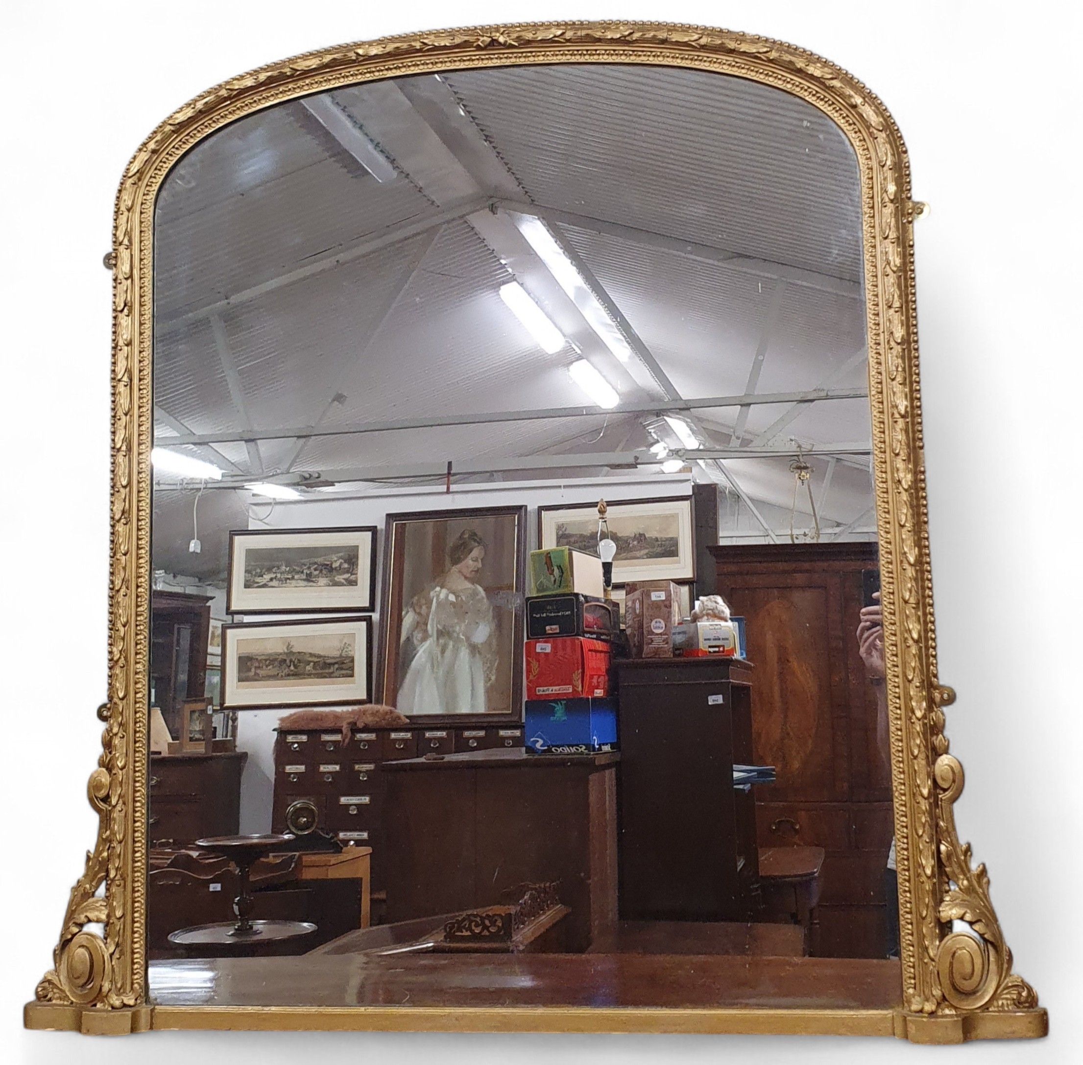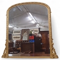 A fantastic 19th Century Timber and Plaster Gilt 3/4 size arch top Overmantel Mirror with highly carved and moulded outline. W 128 x H 130 cm approx.