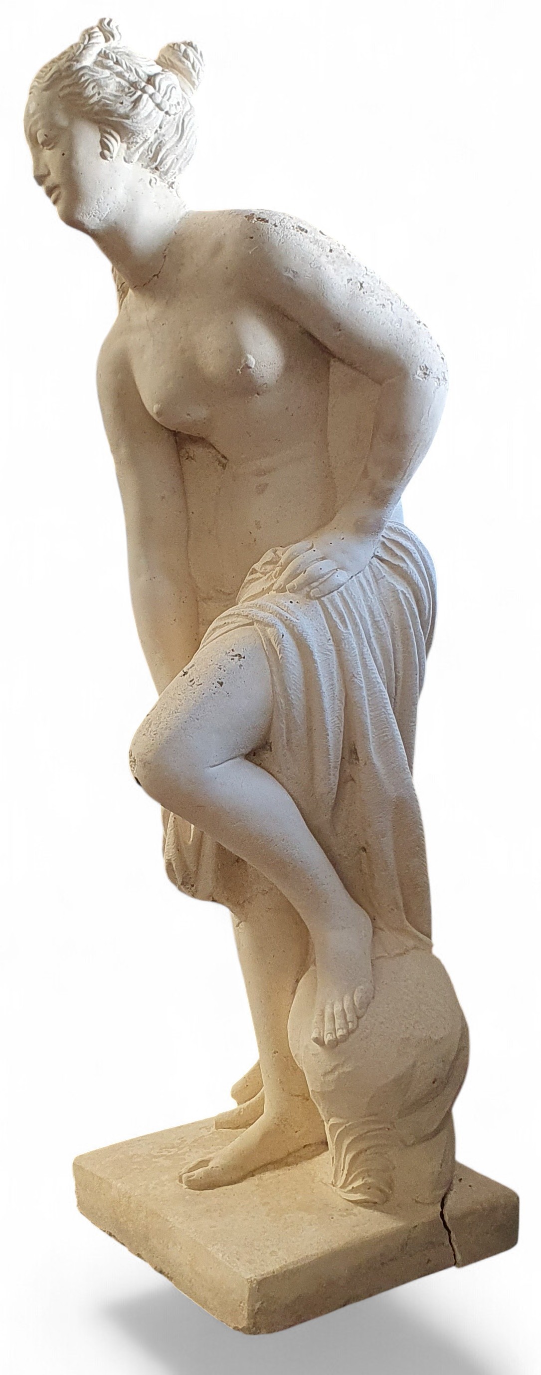 A good reconstituted Stone Figure of a semi naked Woman. H 87 cm approx.