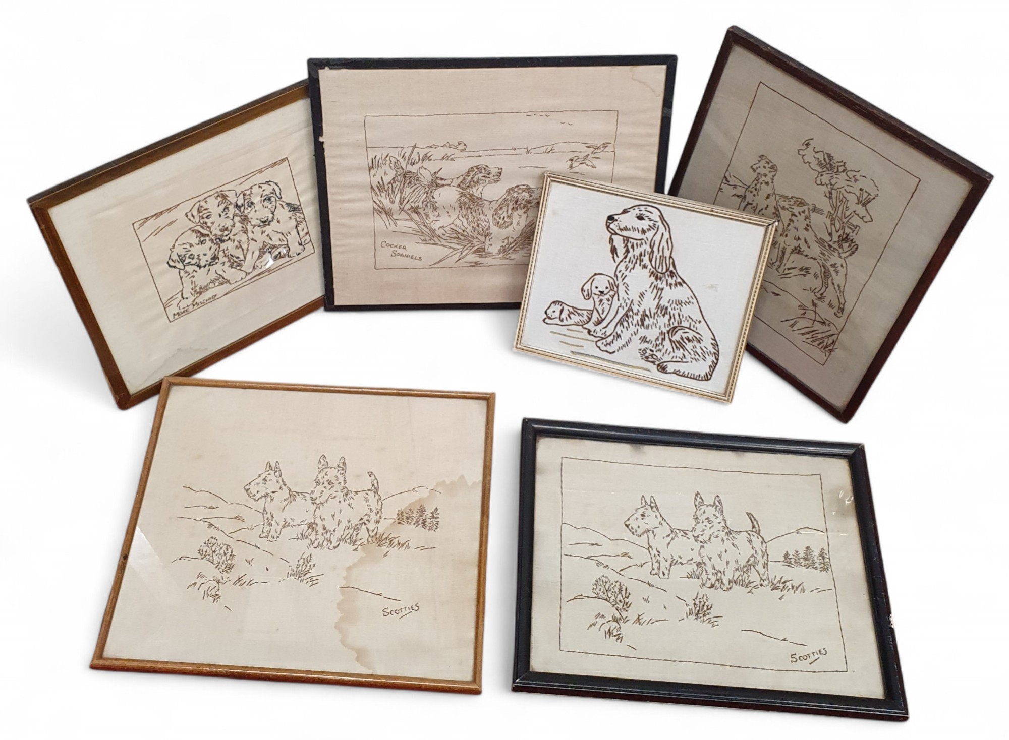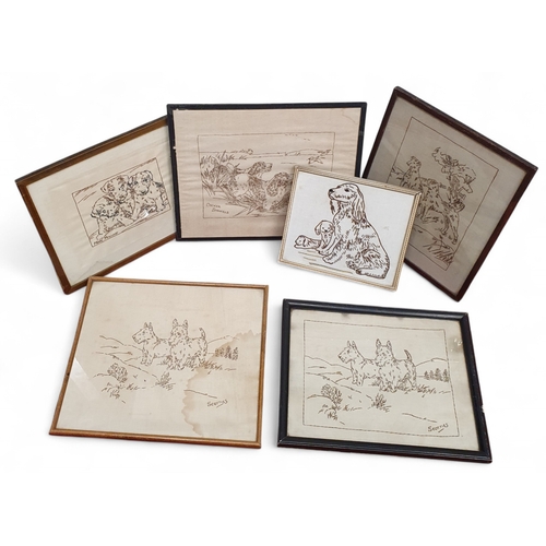 A group of six Needlework Pictures of Dogs.