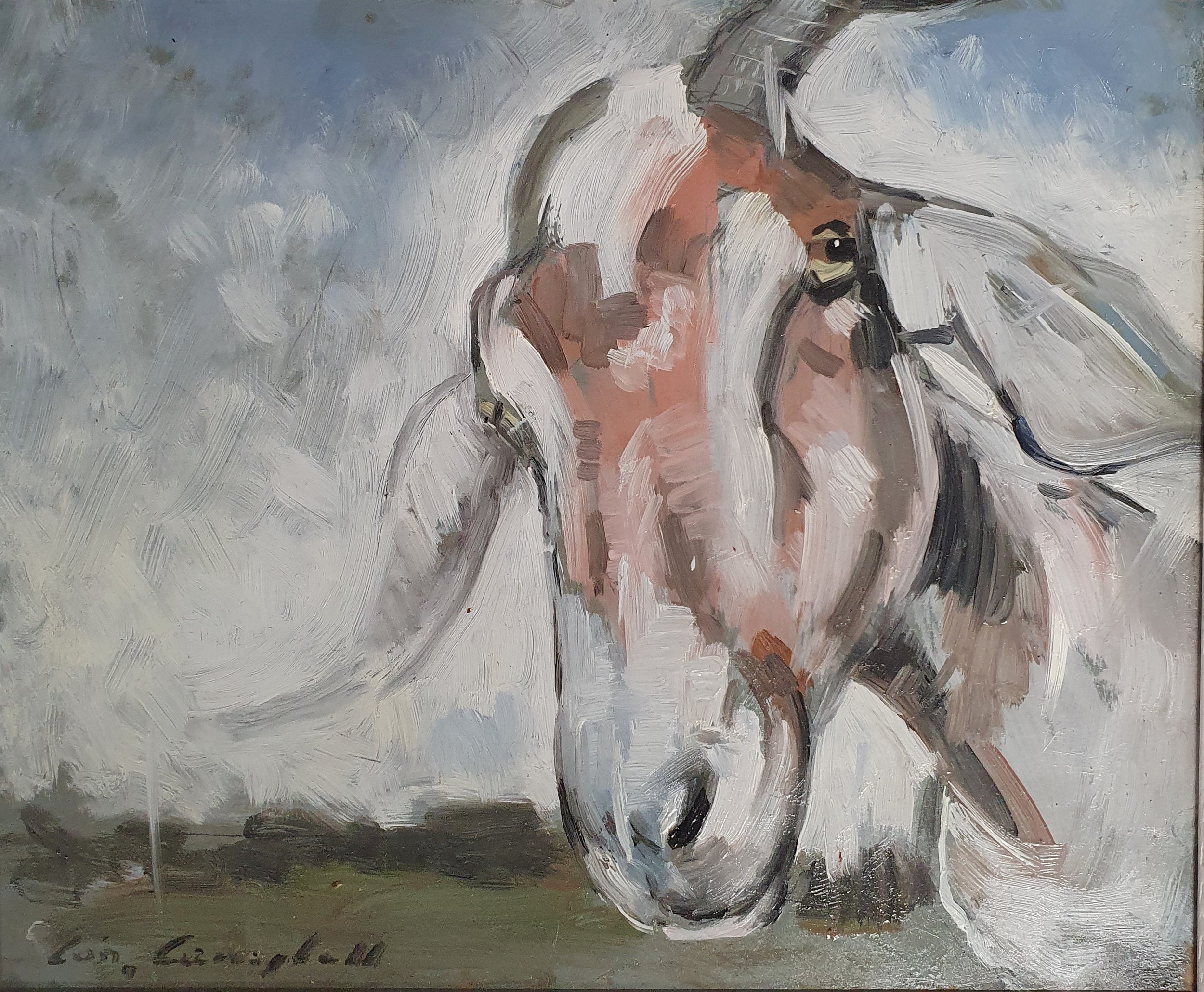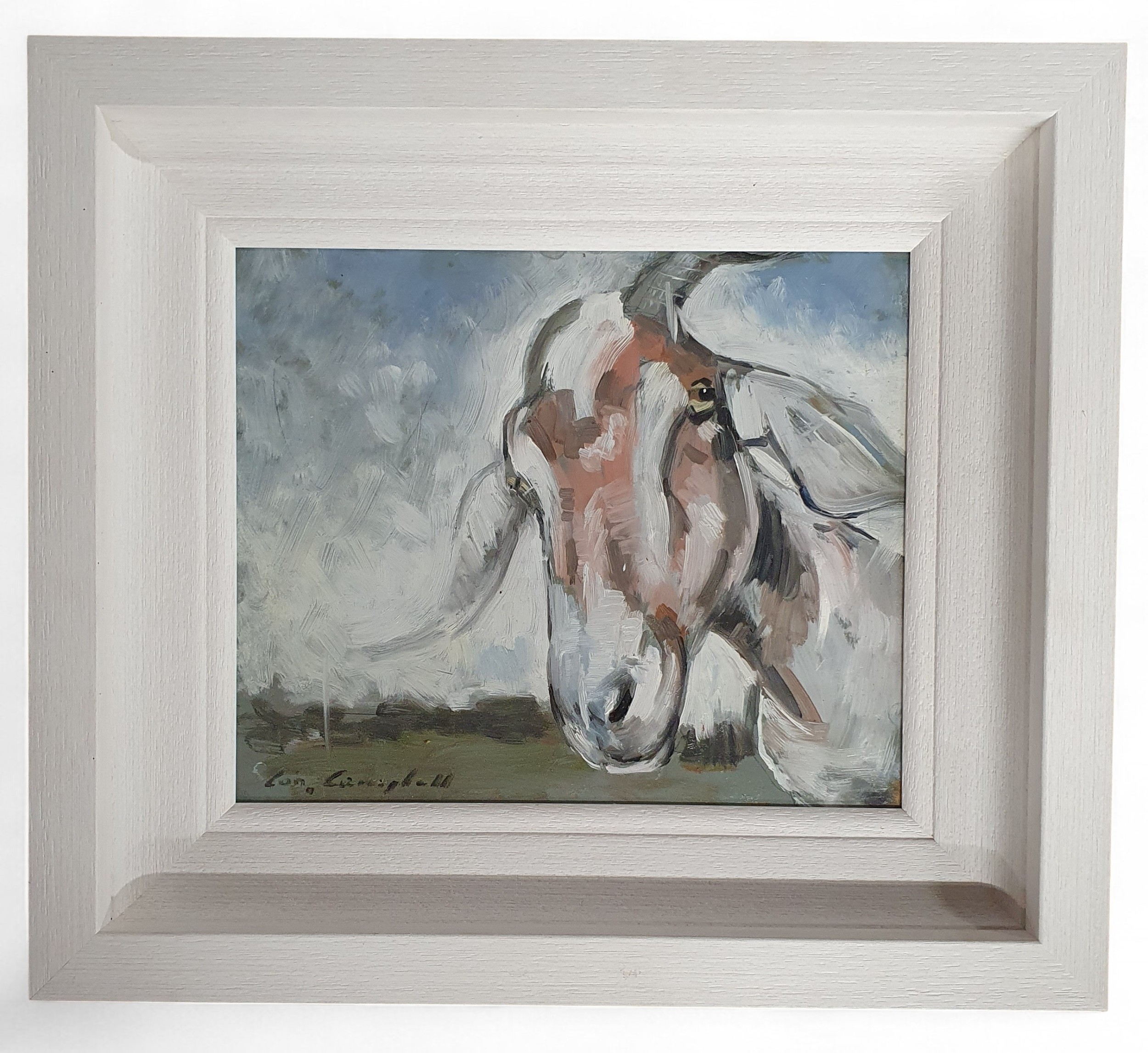 Con Campbell (Irish). An Oil on Board 'Happy Goat'. Framed size 45 x 40cm approx.