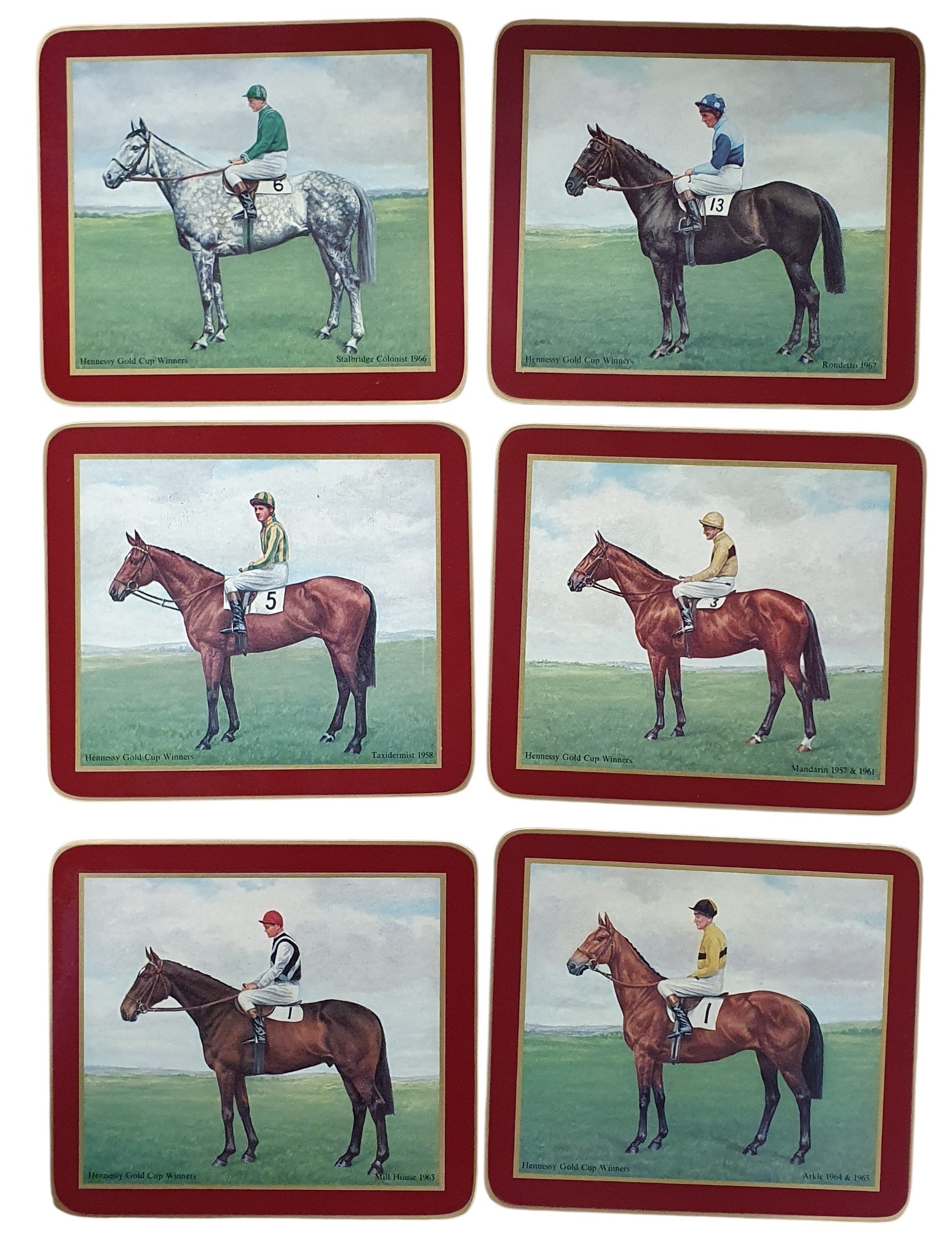 A set of six Hennessy Gold Cup winner's place mats along with a centre place mat.