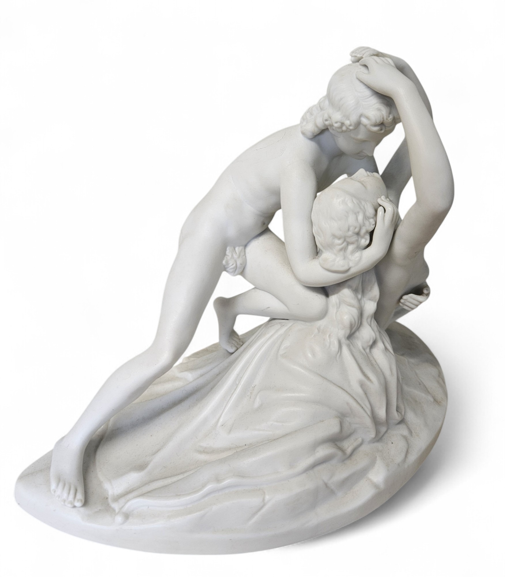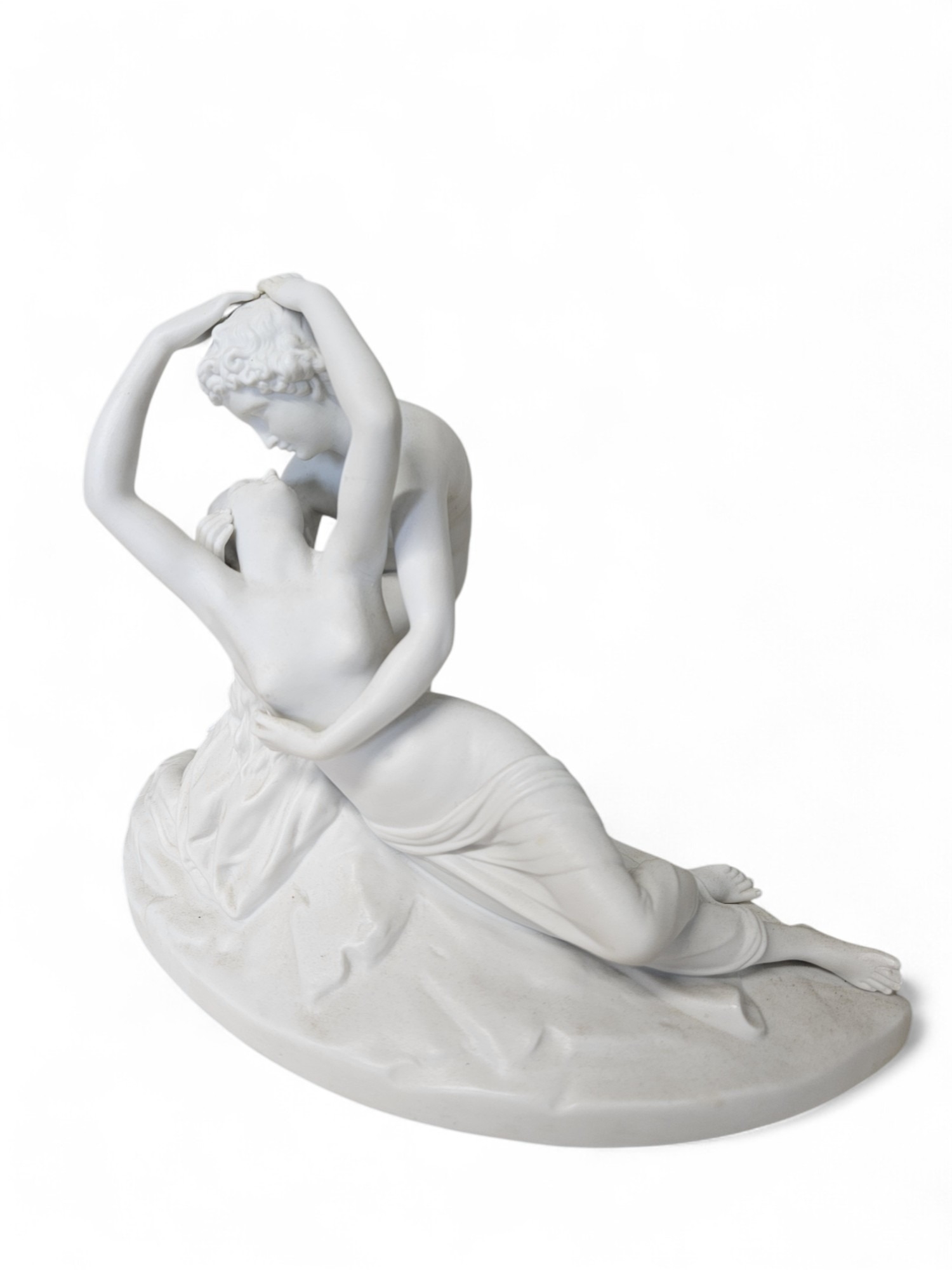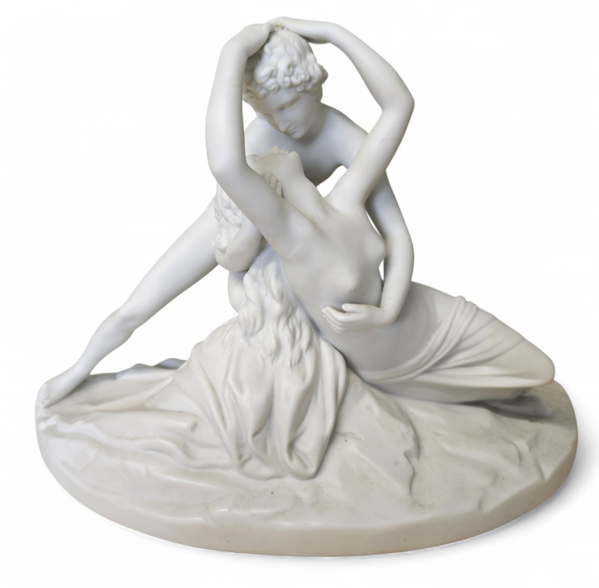 A superb Parian Figure after Canova of a loving couple 'Sublime Love and Psyche' with a number stamped to the back. W 30 x H 20 cm approx.