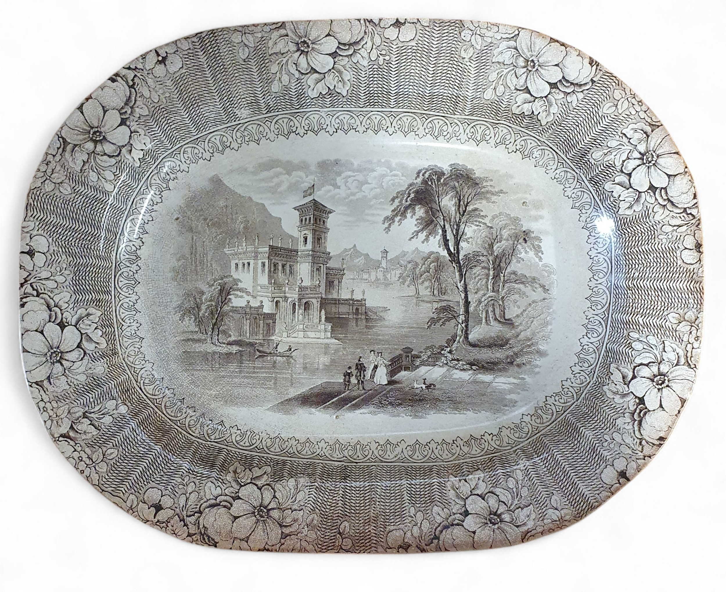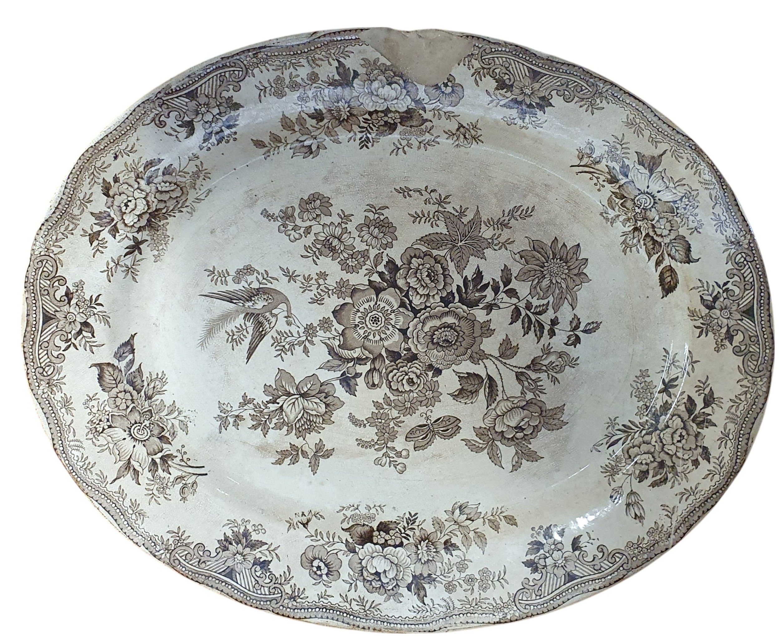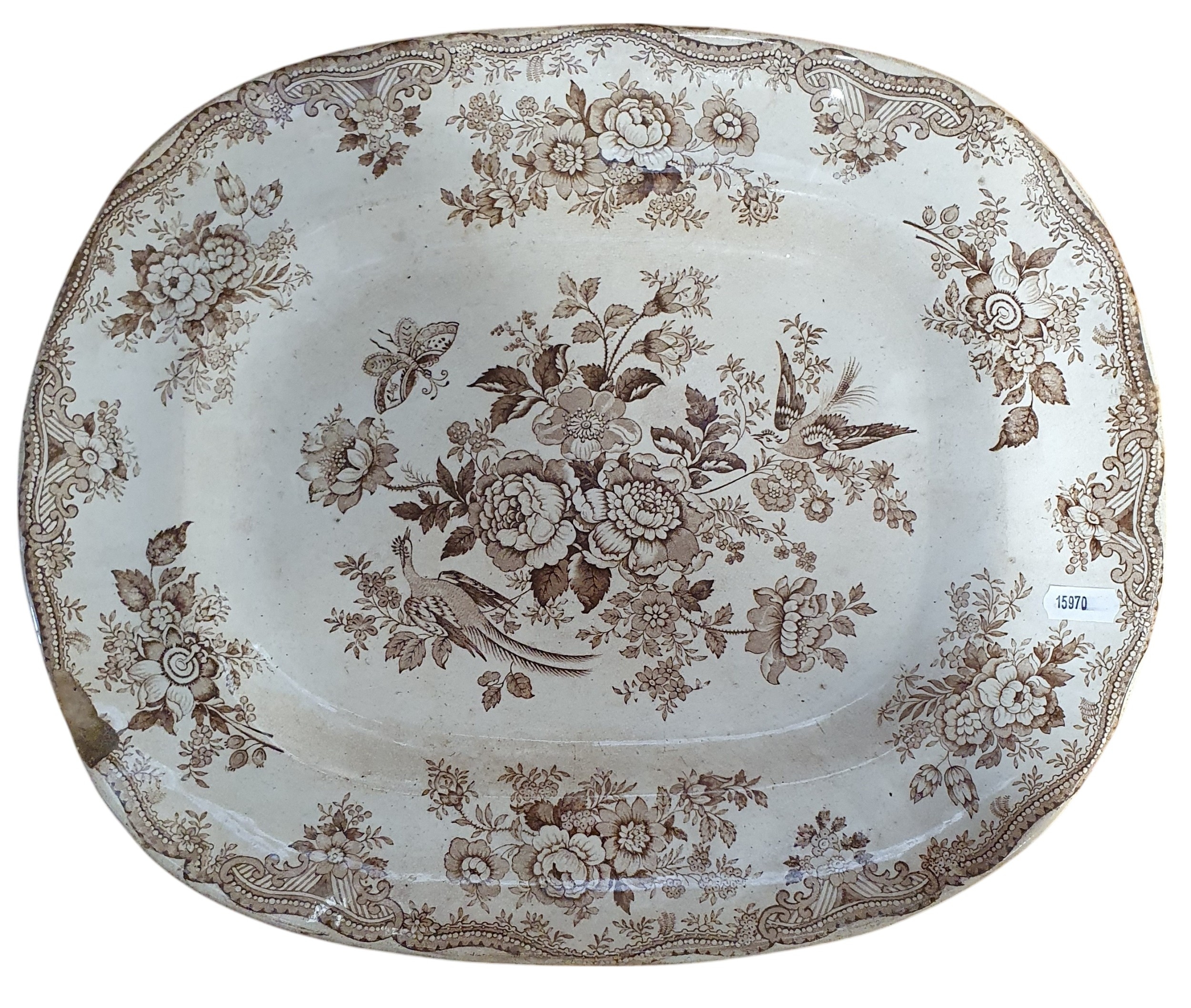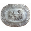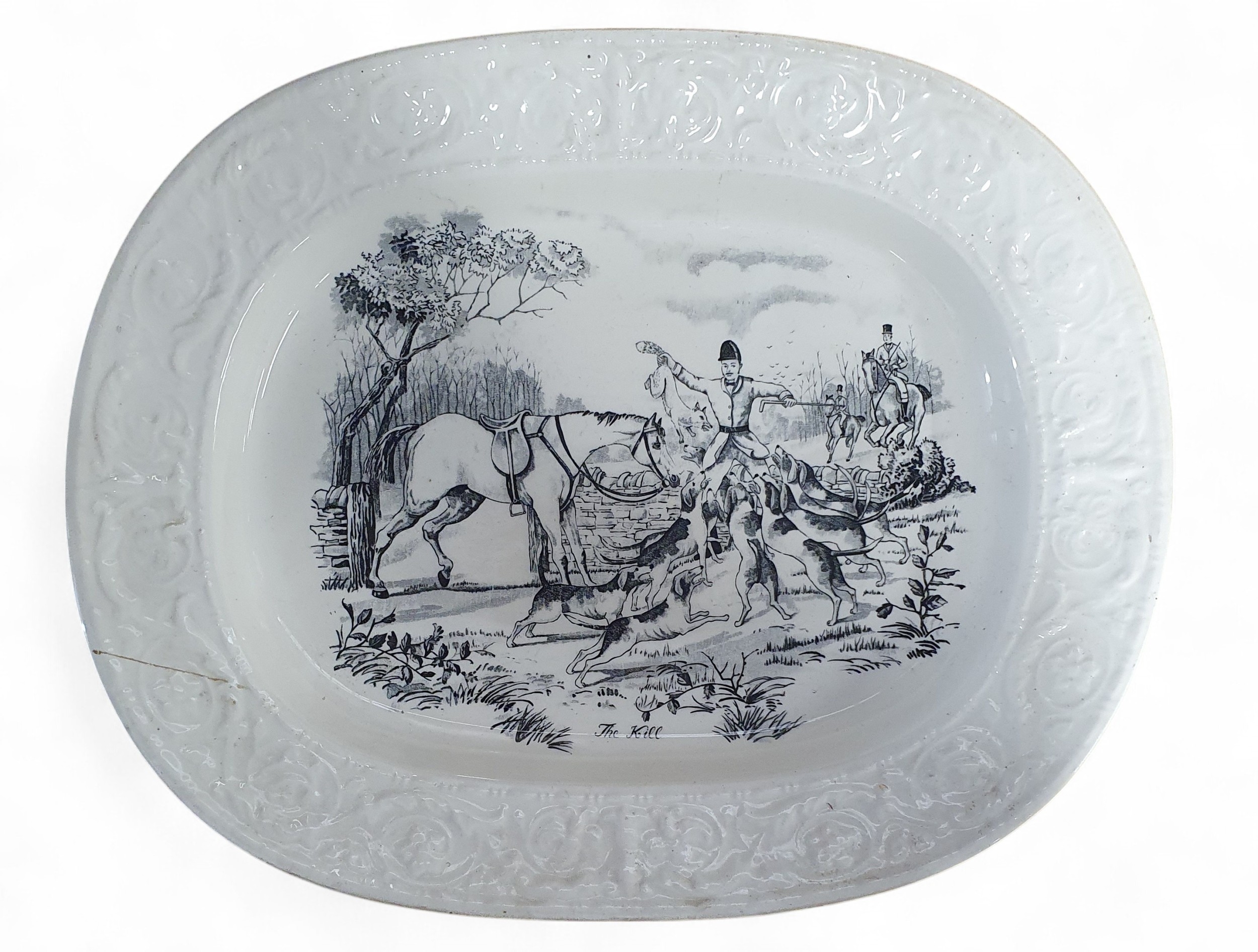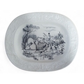 Four 19th Century Meat Platters to include a crown Devon fieldings pattern hunting scene and three brown ground platters. Largest H 45 x 37 cm approx.