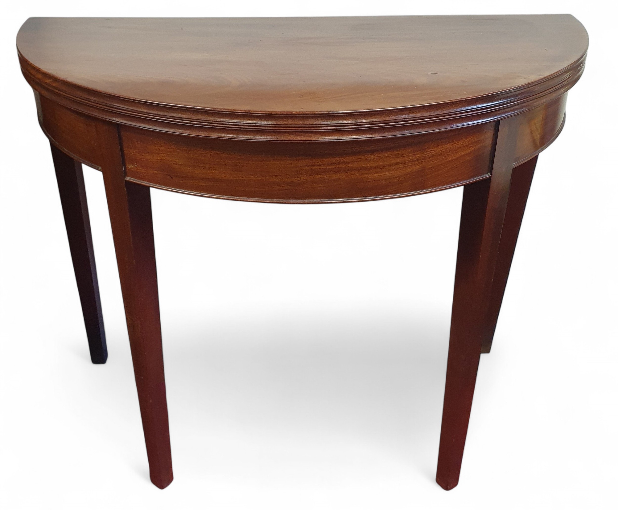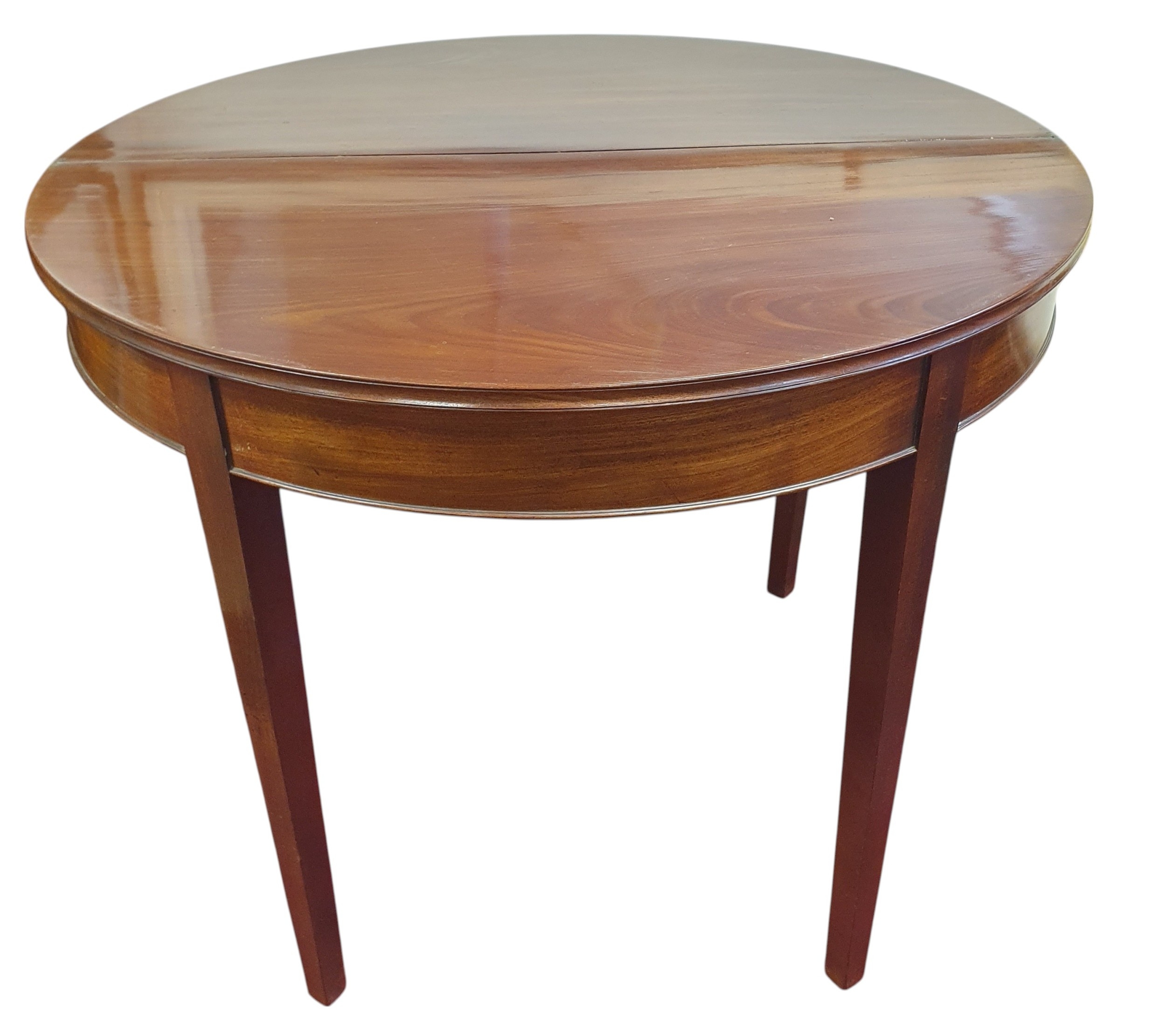 A Regency Mahogany foldover Tea Table of superb quality with square tapered supports.