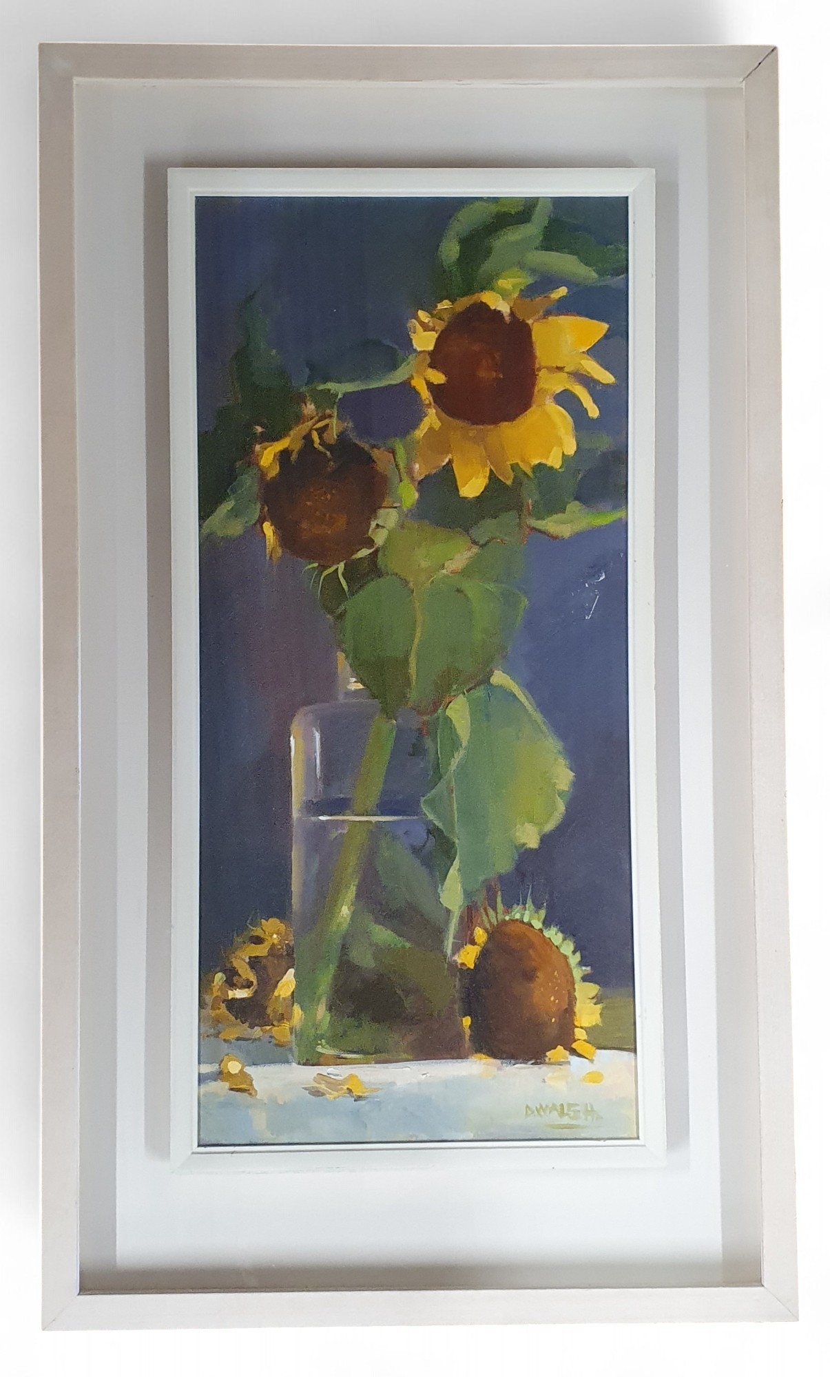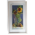 Deirdre Walsh (Irish born 1957). A 20th Century Oil on Canvas of sunflowers in a vase. Signed LR.