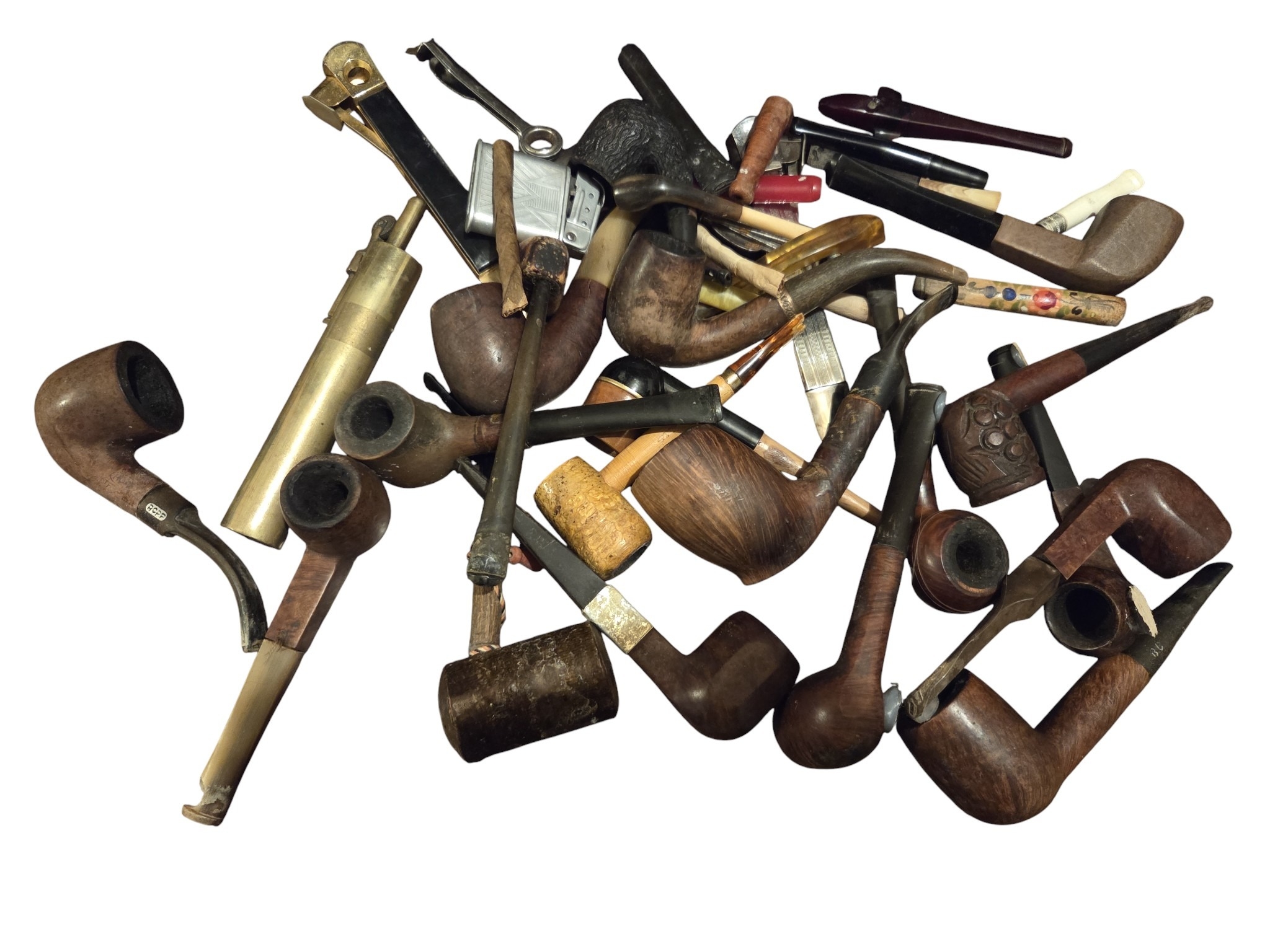 A large quantity of Vintage Pipes and cheroot holders in a Vintage Box.