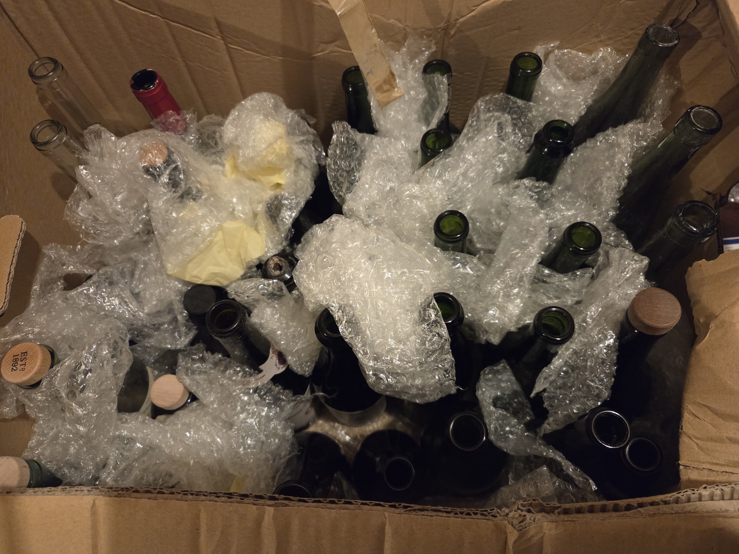 A box of empty Wine Bottles. (could have HERO DNA on them).