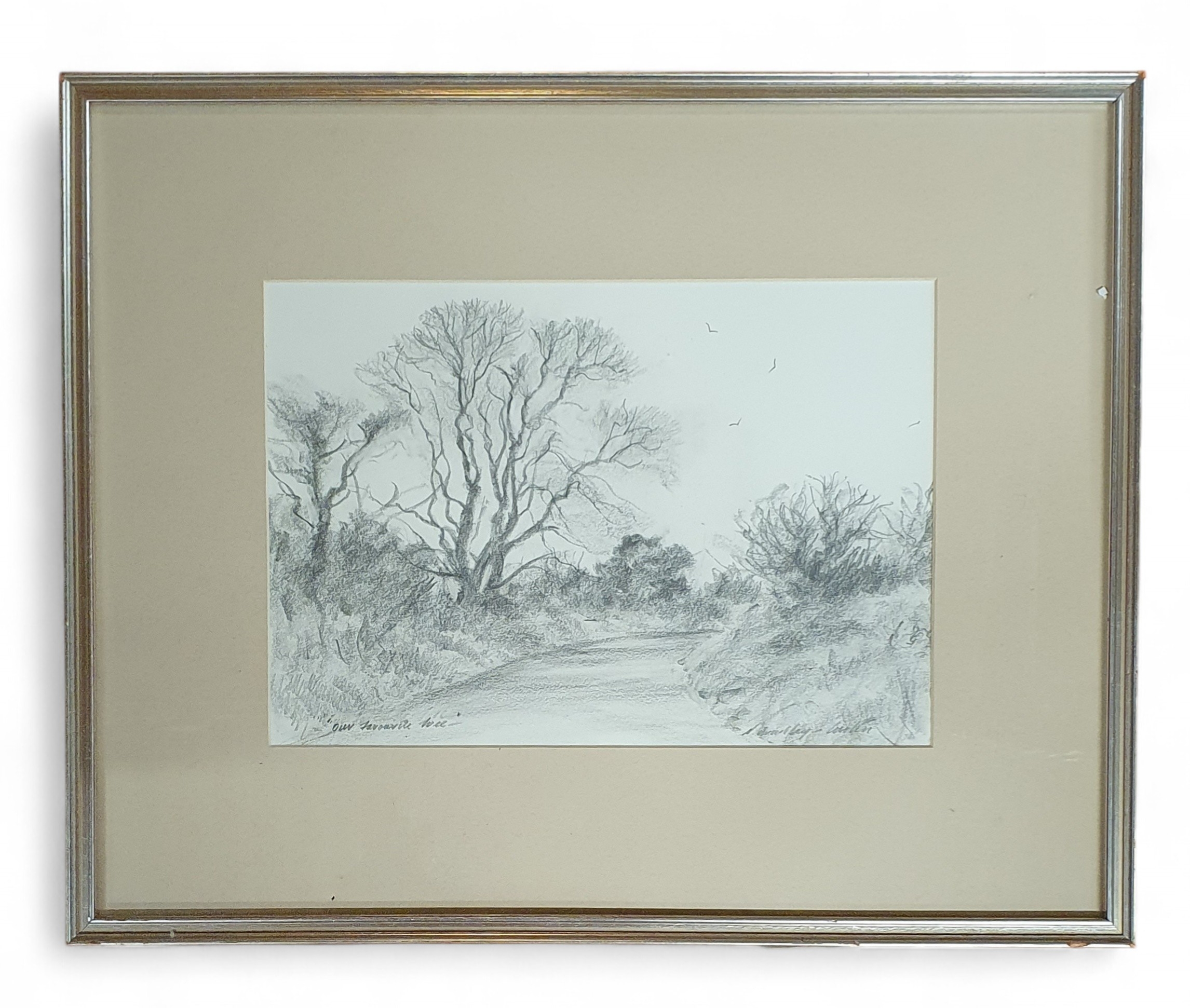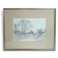 A 20th Century Pencil Drawing of a river scene. Signed indistinctly LR. 24 x 33 cm approx.